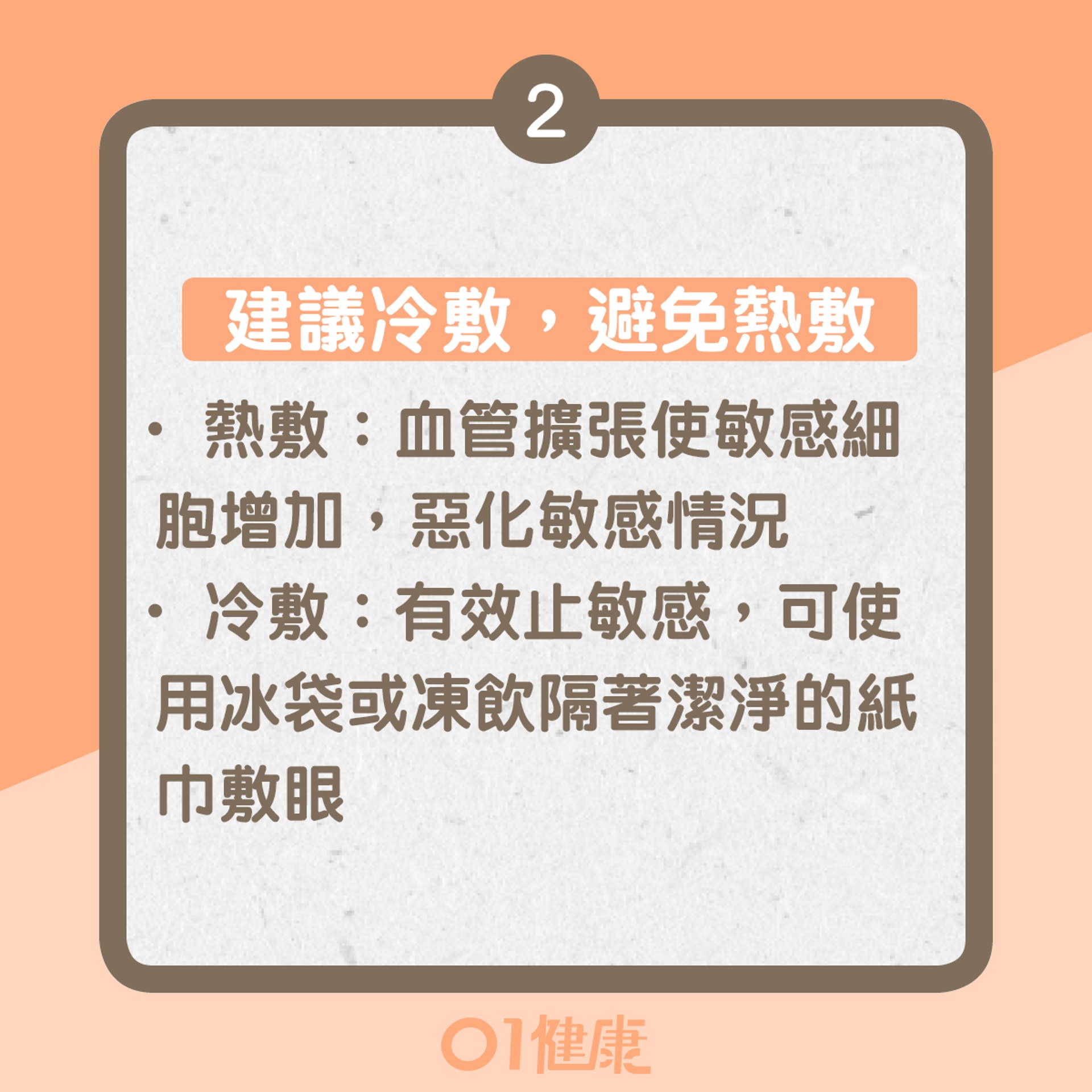 當眼晴出現狀況時,不少人或會建議敷熱雞蛋,那麼敷熱雞蛋是否適用於紓緩眼敏感?邱醫生直言,熱敷只會適得其反,因血管擴張使敏感細胞增加,惡化敏感情況;冷敷才有效止敏感,他建議患者可使用冰袋或凍飲隔著潔淨的紙巾敷眼。