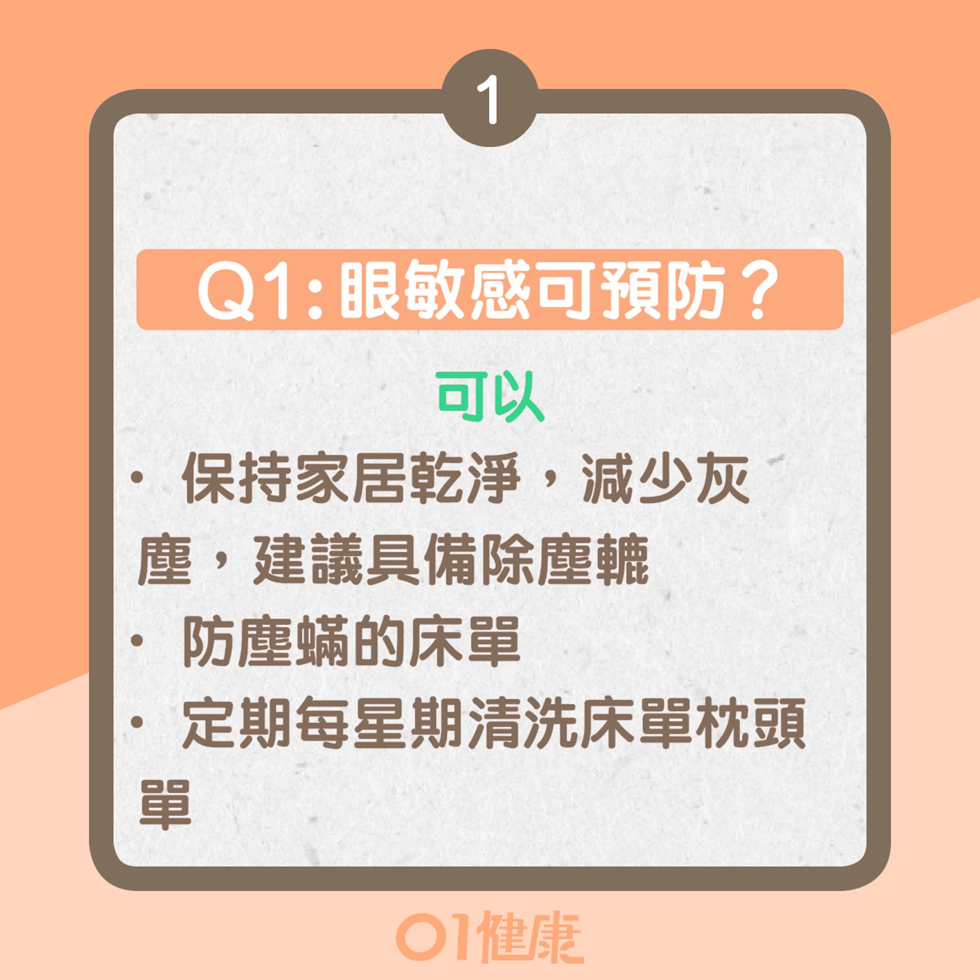以下改善日常生活習慣、衛生減低接觸致敏原,例如: