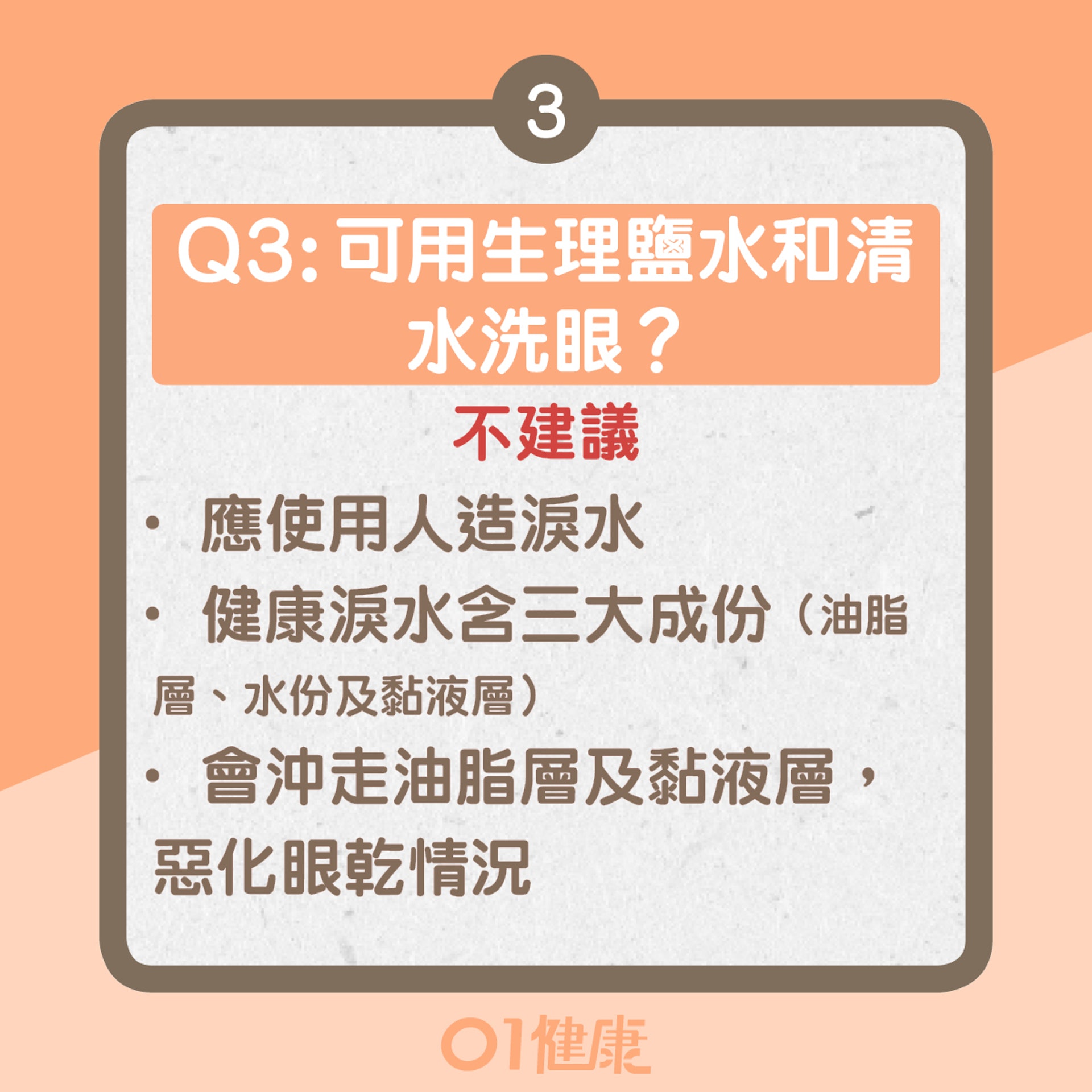 邱醫生表示「人造淚水令淚水分泌減少」是常見的謬誤,他澄清淚水分泌會隨年紀增長而減少,尤其女性。